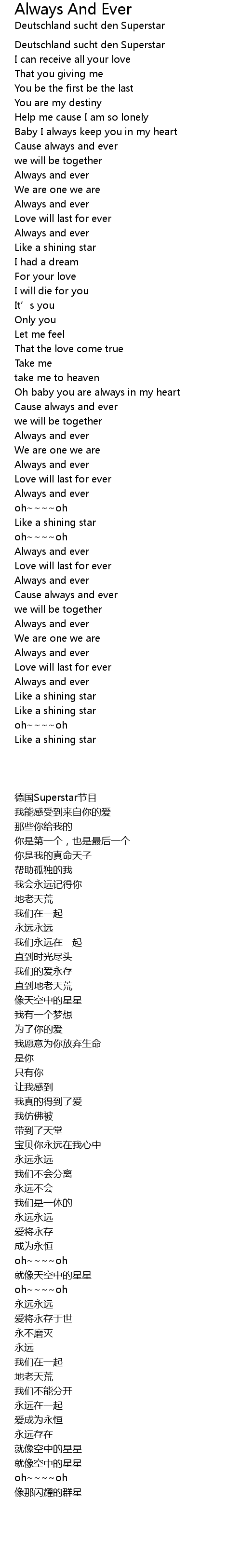 | 歌曲 | Always And Ever |