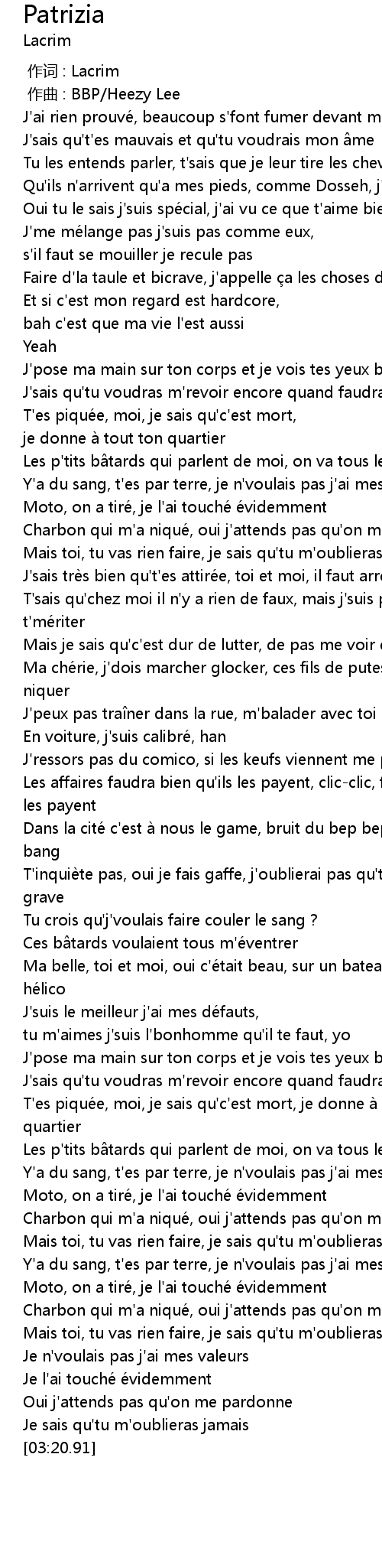 | [02:54.56] | Charbon qui m' a nique, oui j' attends pas qu' on me pardonne |