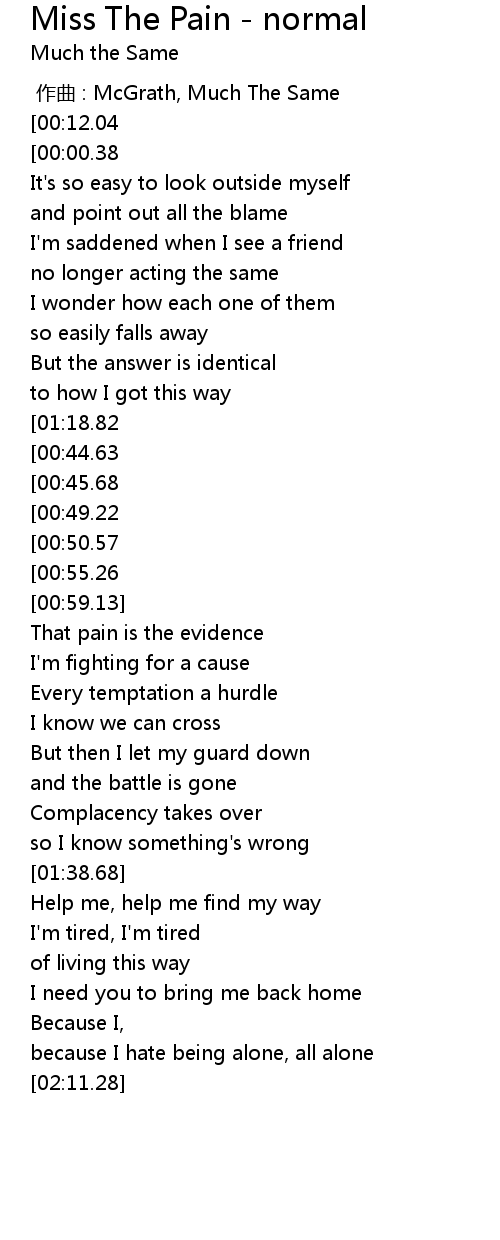 | 歌曲 | Miss The Pain - normal |