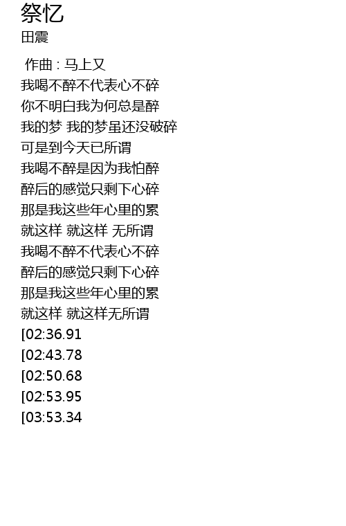 | [02:09.38] | 我喝不醉不代表心不碎 |