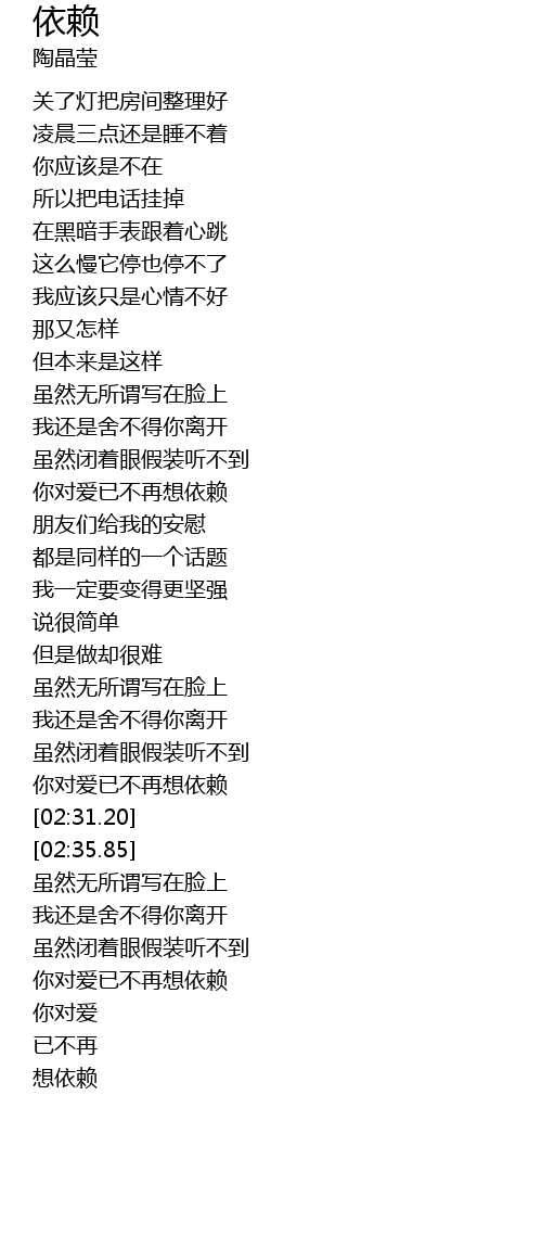 | [02:53.78] | nǐ duì ài yǐ bù zài xiǎng yī lài |