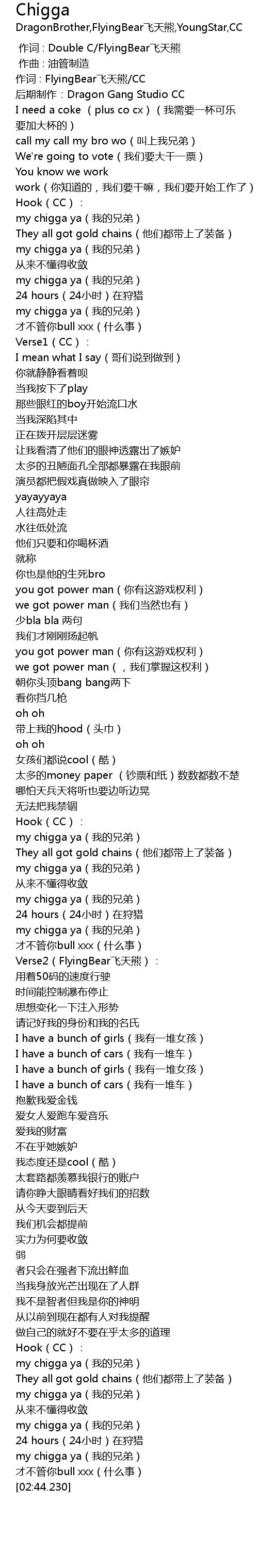 | [02:32.174] | my chigga ya(我的兄弟) |