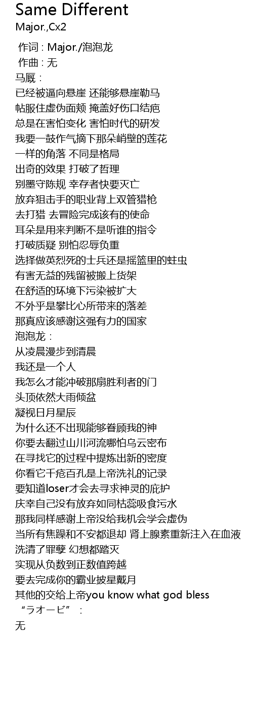| [00:00.000] | 作词 : Major./泡泡龙 |