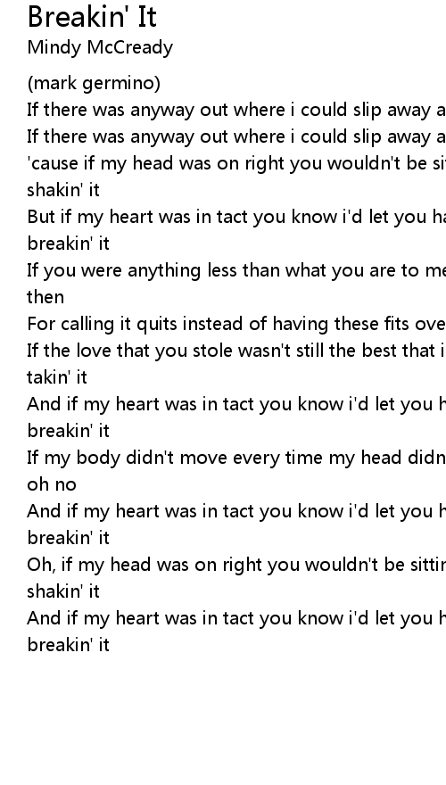 And if my heart was in tact you know i'd let you have the first crack at breakin' it |