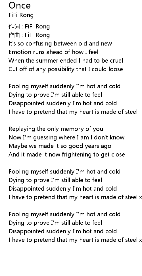 | Fooling myself suddenly I' m hot and cold | |