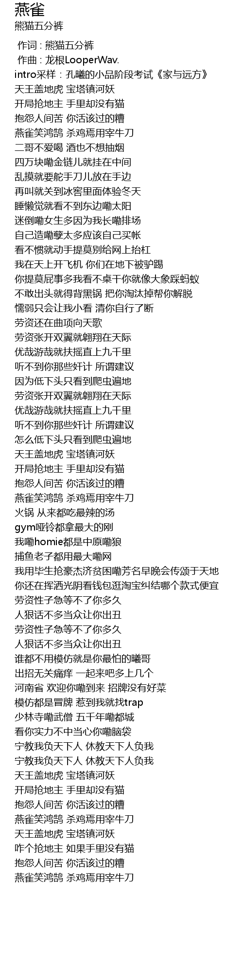 | [00:33.197] | yan que xiao hong hu sha ji yan yong zai niu dao |