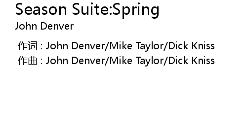 | [00:00.000] | 作曲 : John Denver/Mike Taylor/Dick Kniss |