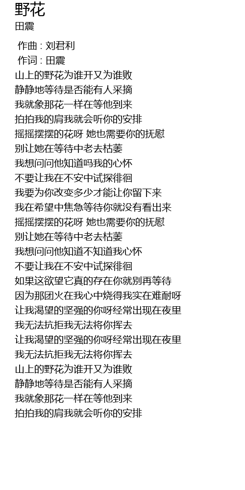 | [00:14.500] | 山上的野花为谁开又为谁败 |