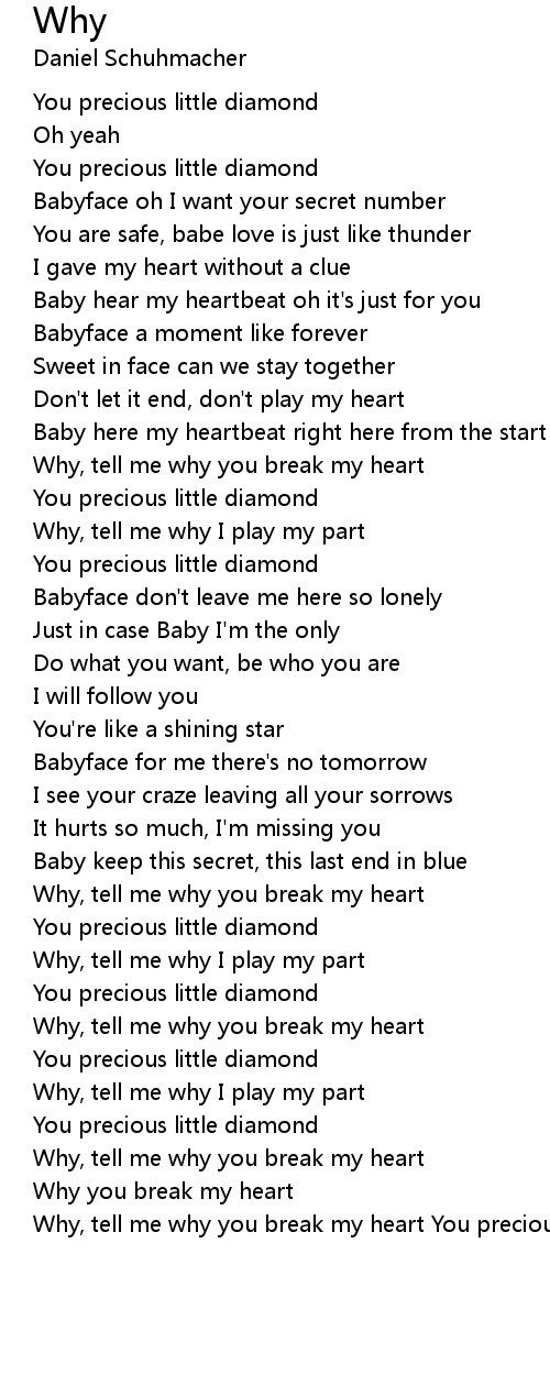 Why, tell me why you break my heart You precious little diamond ......