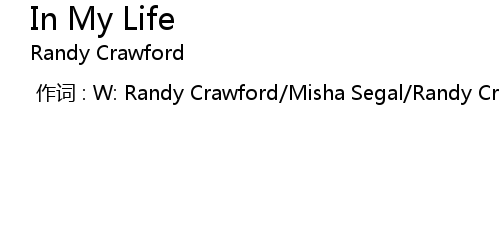| [00:00.000] | zuo ci : W: Randy Crawford Misha Segal Randy Crawford M: Misha Segal |