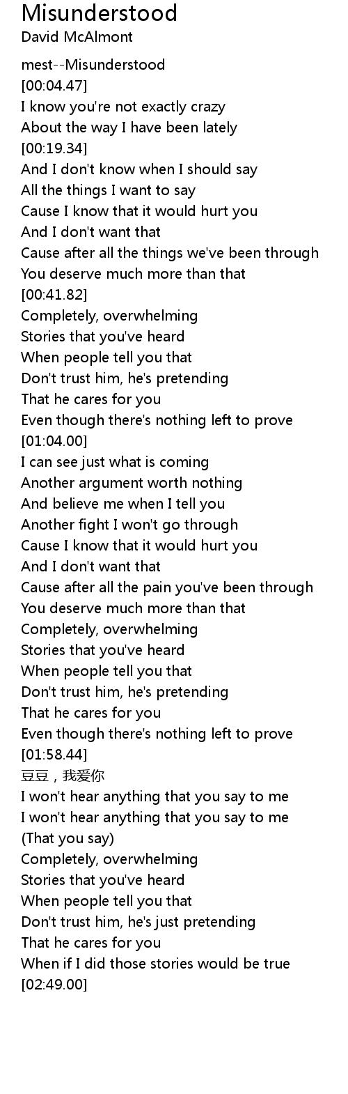 | [00:53.72] | Don' t trust him, he' s pretending |
