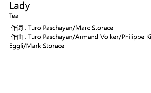 | [00:00.000] | 作曲 : Turo Paschayan/Armand Volker/Philippe Kienholz/Roland Eggli/Mark Storace |