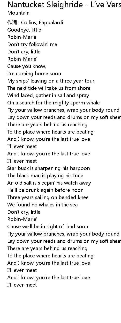 | 歌曲 | Nantucket Sleighride - Live Version |