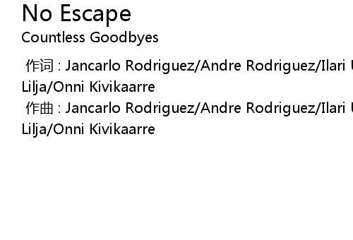 | [00:00.000] | 作词 : Jancarlo Rodriguez/Andre Rodriguez/Ilari Ukkola/Lauri Lilja/Onni Kivikaarre |