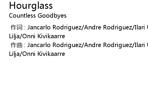 | [00:00.000] | 作词 : Jancarlo Rodriguez/Andre Rodriguez/Ilari Ukkola/Lauri Lilja/Onni Kivikaarre |