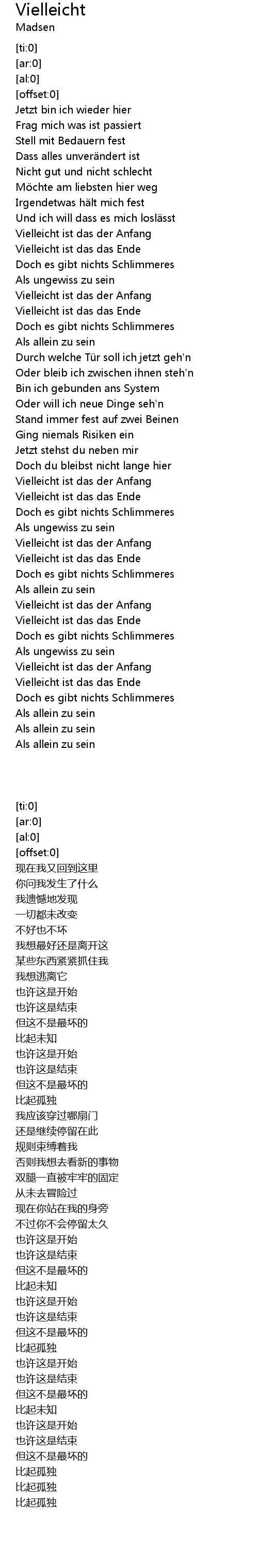 | [03:21.88] | Als allein zu sein |