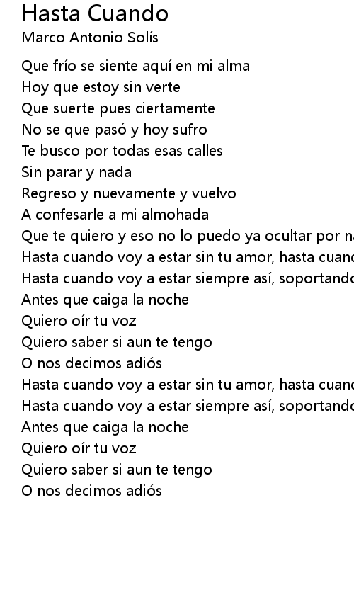 | Hasta cuando voy a estar sin tu amor, hasta cuando | |