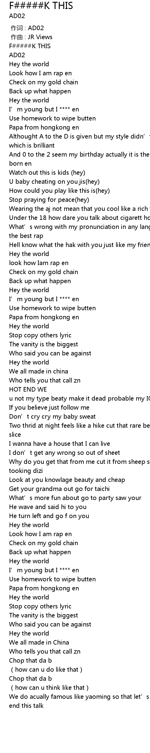 | 歌曲 | F#####K THIS |
