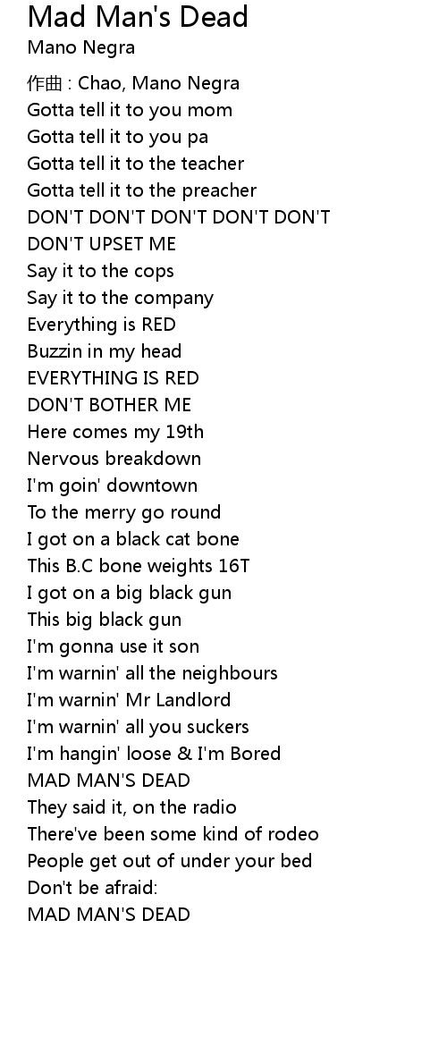 | 歌曲 | Mad Man's Dead |