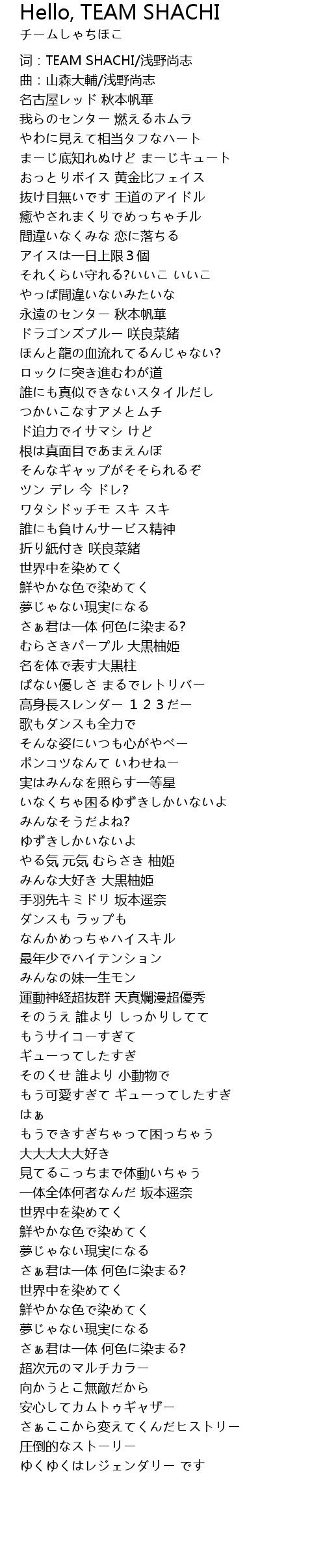 | [00:02.15] | 词:TEAM SHACHI/浅野尚志 |