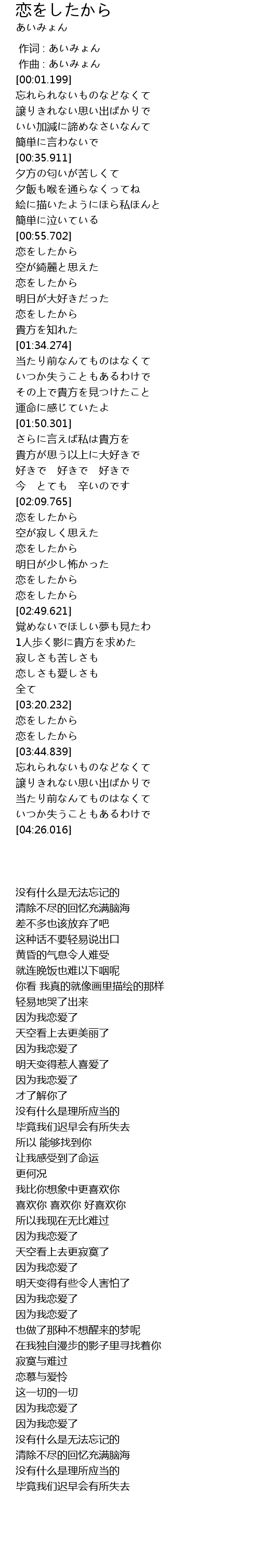 | [02:44.916] | 恋をしたから |