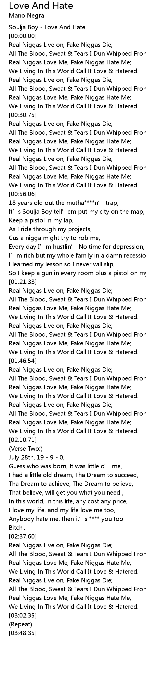 | [02:44.35] | Real Niggas Love Me; Fake Niggas Hate Me; |
