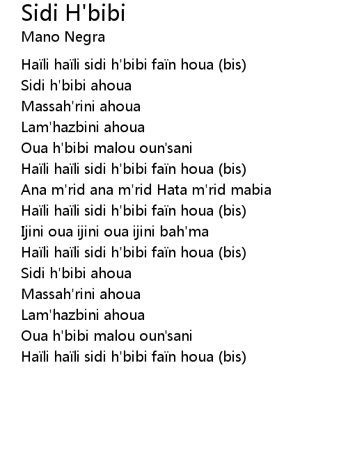 | Ha li ha li sidi h' bibi fa n houa bis |