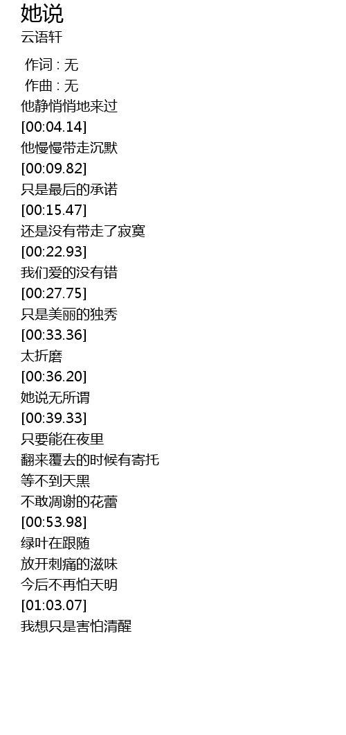 | [00:36.92] | tā shuō wú suǒ wèi |