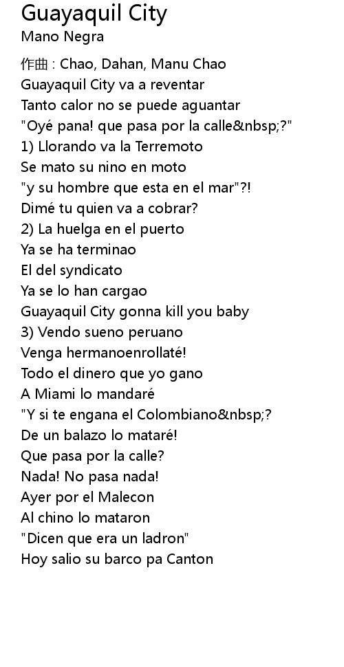 | " Oyé pana! que pasa por la calle nbsp?" | |
