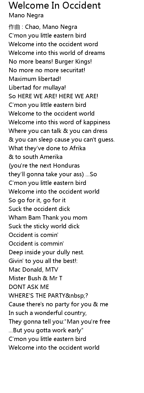 | 歌曲 | Welcome In Occident |