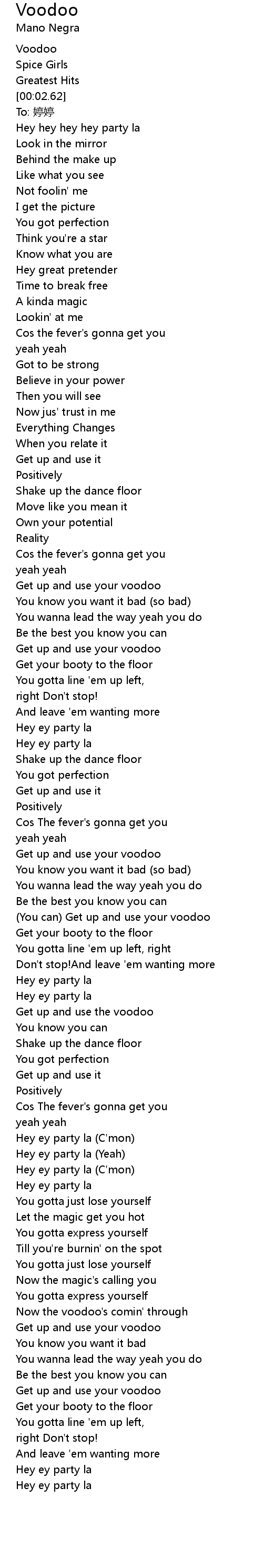 | [01:28.77] | (You can) Get up and use your voodoo |