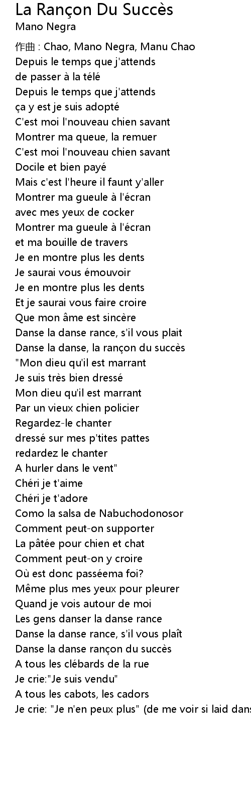| 歌曲 | La Rançon Du Succès |