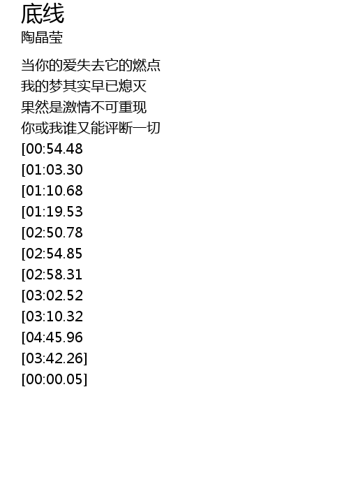 | [04:00.65][02:54.85][01:31.70] | 你我的爱竟是如此俗艳 |