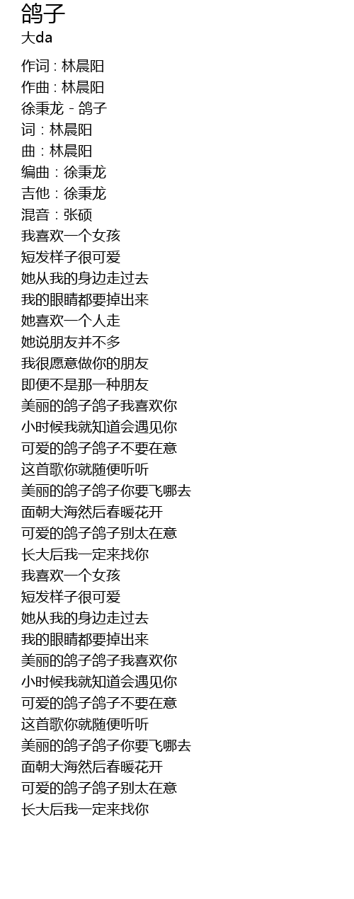 | 美丽的鸽子鸽子我喜欢你 | |