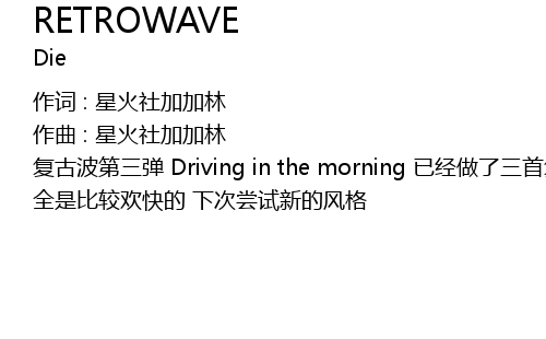 | 复古波第三弹 Driving in the morning 已经做了三首复古波 全是比较欢快的 下次尝试新的风格 |