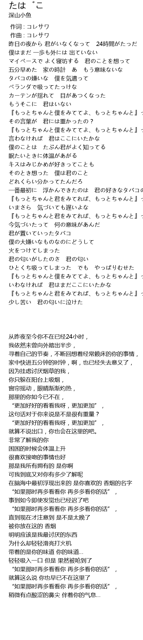 | [03:19.647] | 一番最初に 浮かんできたのは 君の好きなタバコの名前 |