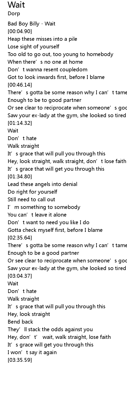 | [03:21.76] | Hey, don’t’ wait, walk straight, lose faith |