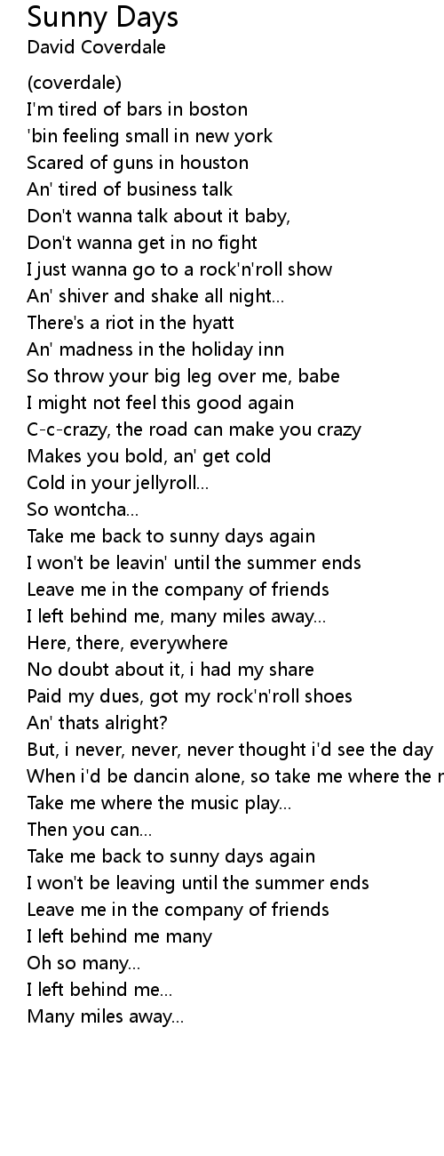 Take me back to sunny days again |