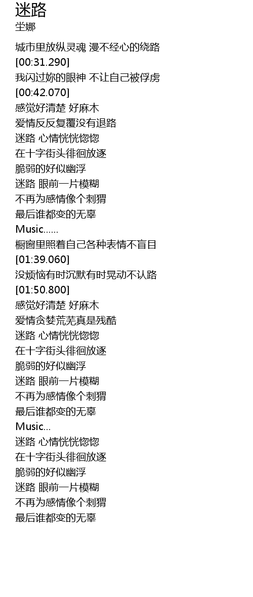 | [00:59.160] | 迷路 心情恍恍惚惚 |