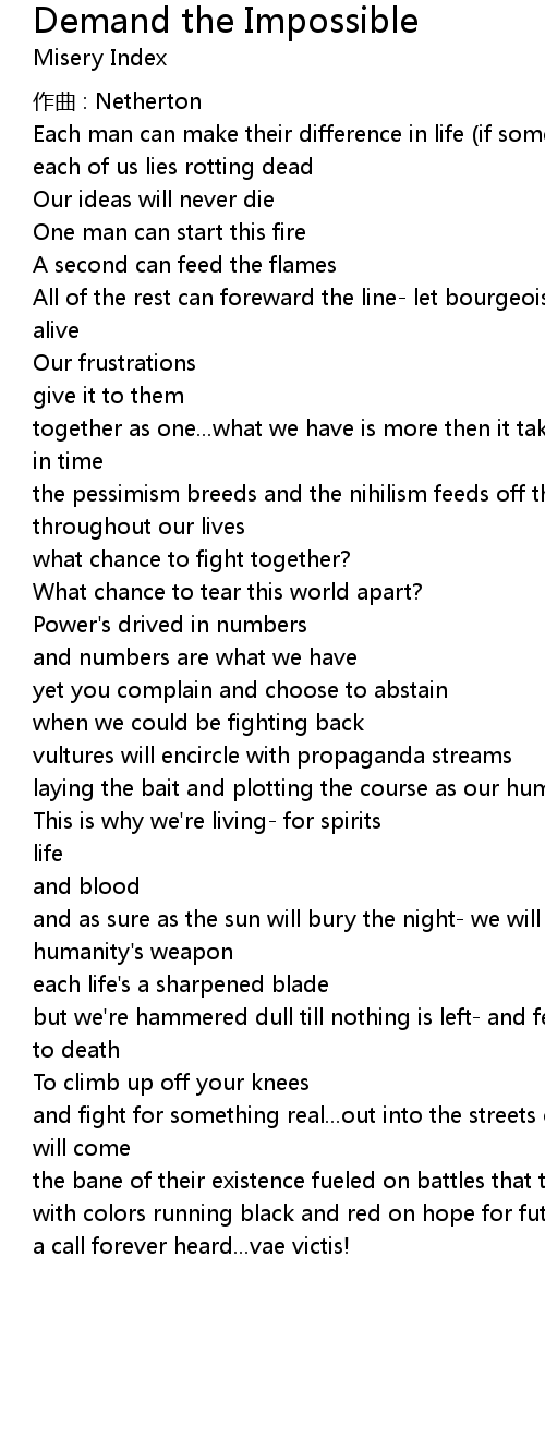 | the pessimism breeds and the nihilism feeds off the apathy we're fed | |