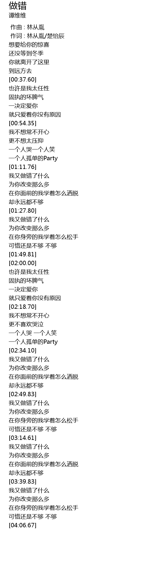 | [03:40.53] | 我又做错了什么 |