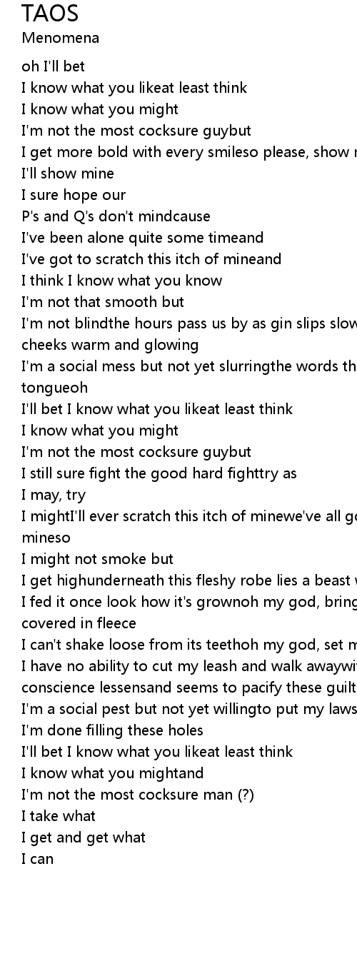 | I'm a social mess but not yet slurringthe words that come to rest upon my luring tongueoh | |