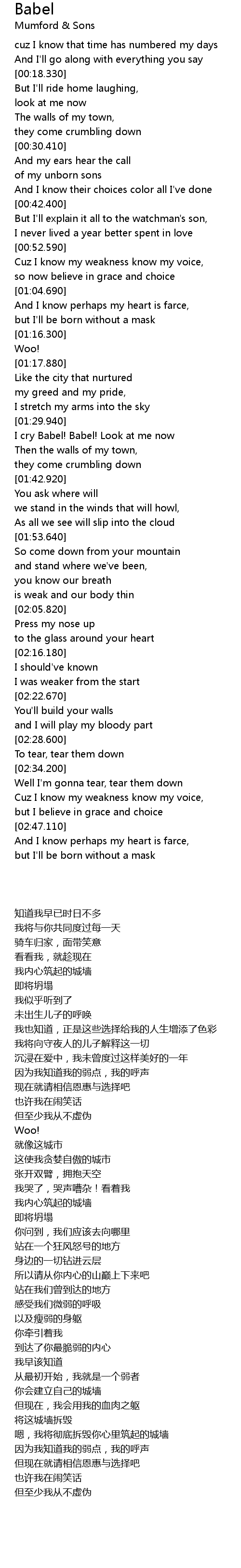 | [01:35.120] | I cry Babel! Babel! Look at me now |