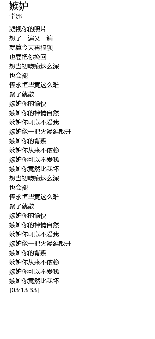 | [03:03.29] | 嫉妒你可以不爱我 |