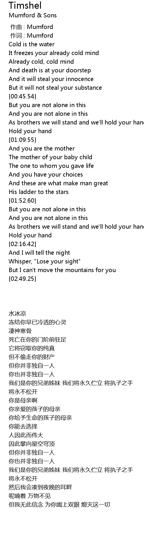 | [00:01.00] | 作词 : Mumford |