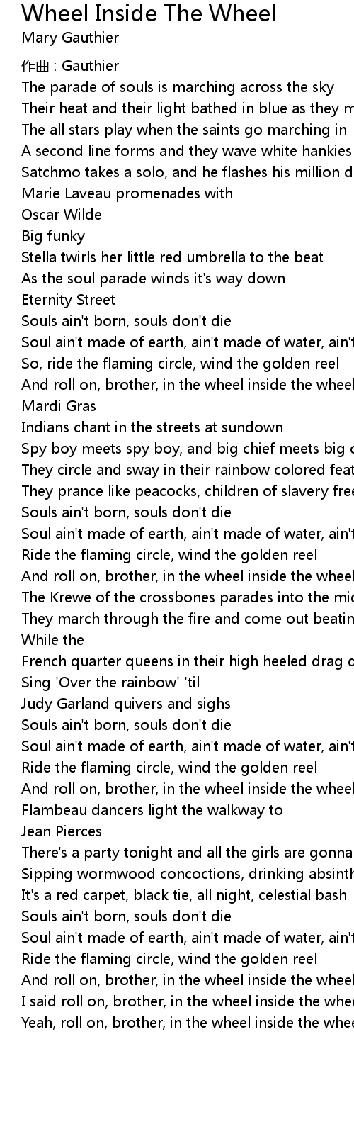 | Yeah, roll on, brother, in the wheel inside the wheel |