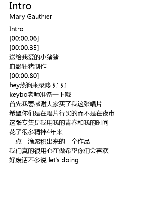| [00:00.05] | Intro |