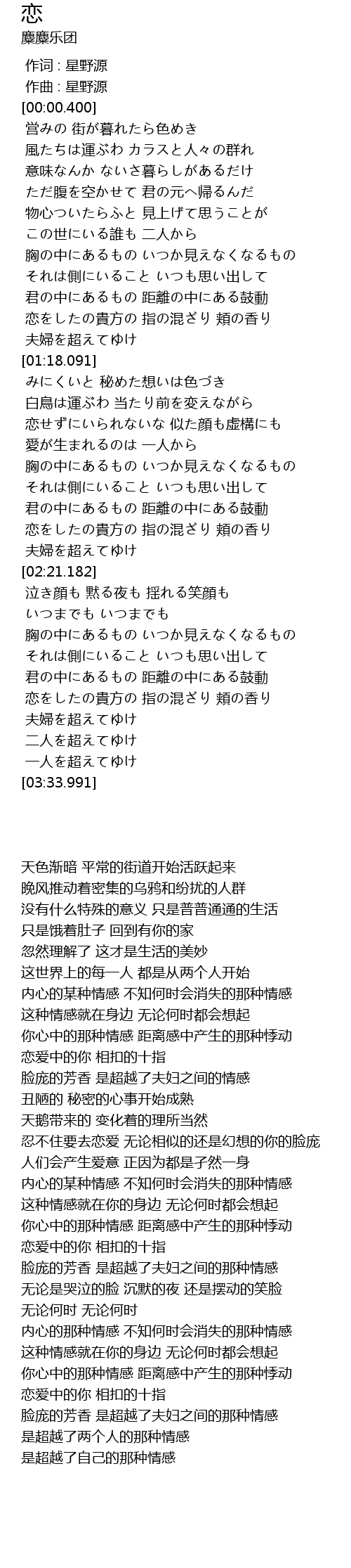 | [00:00.000] | 作词 : 星野源 |