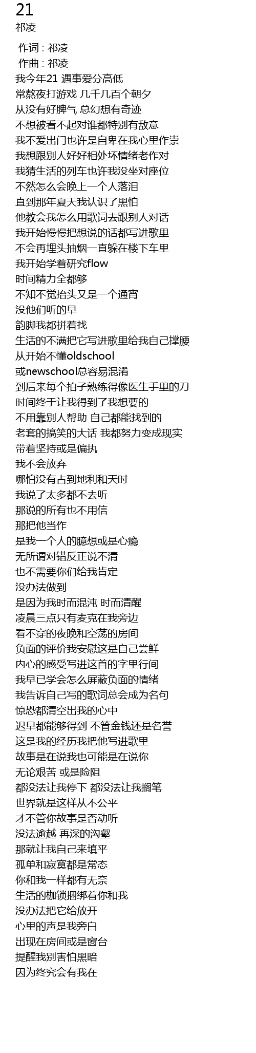 | [00:20.91] | 我今年21 遇事爱分高低 |