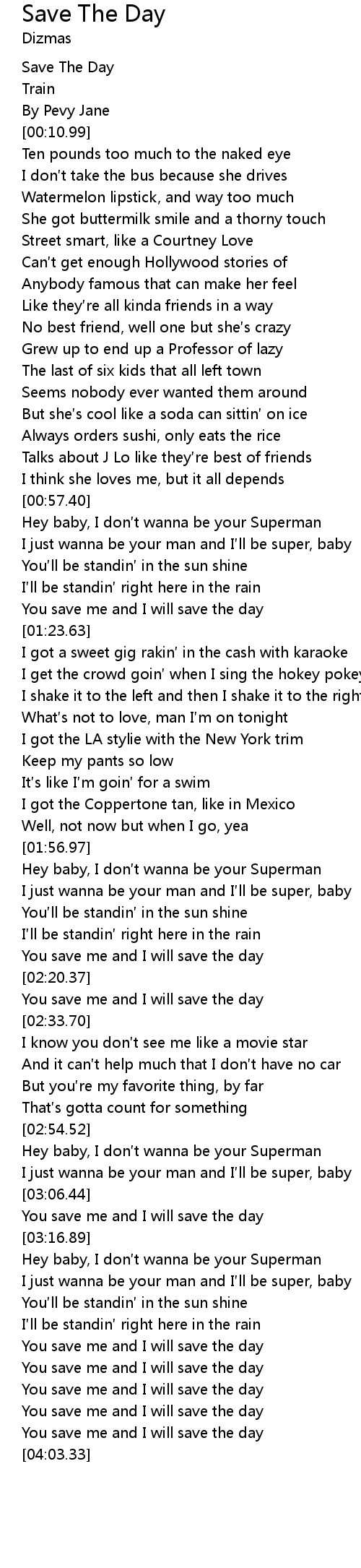 | [00:02.52] | Save The Day |